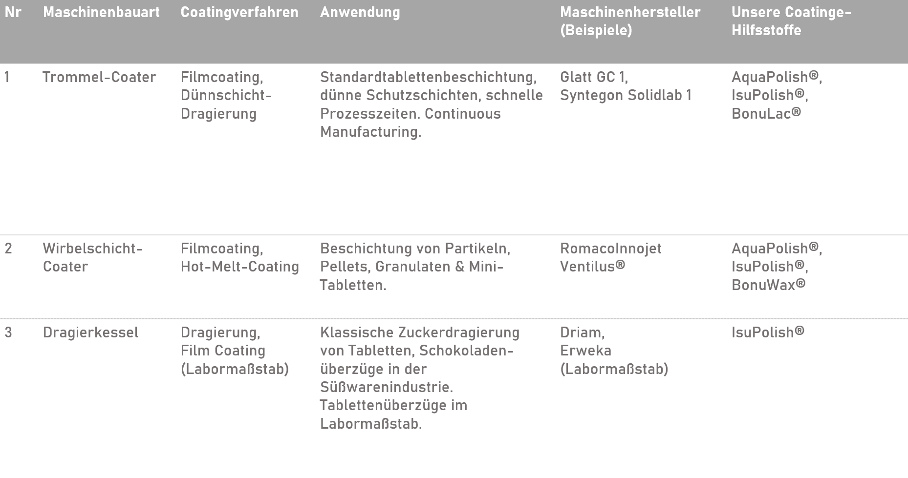 BIOGRUND arbeitet mit Coating-Maschinen folgender Hersteller:
