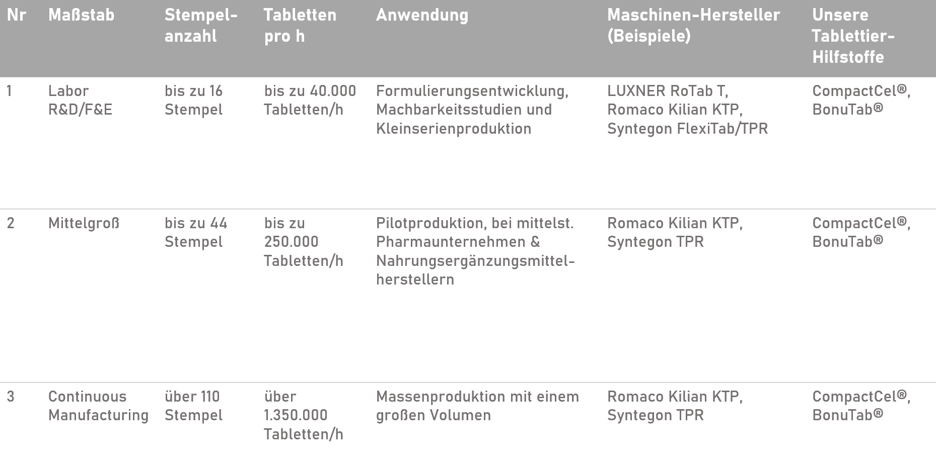 BIOGRUND arbeitet mit Tablettiermaschinen folgender Hersteller:
